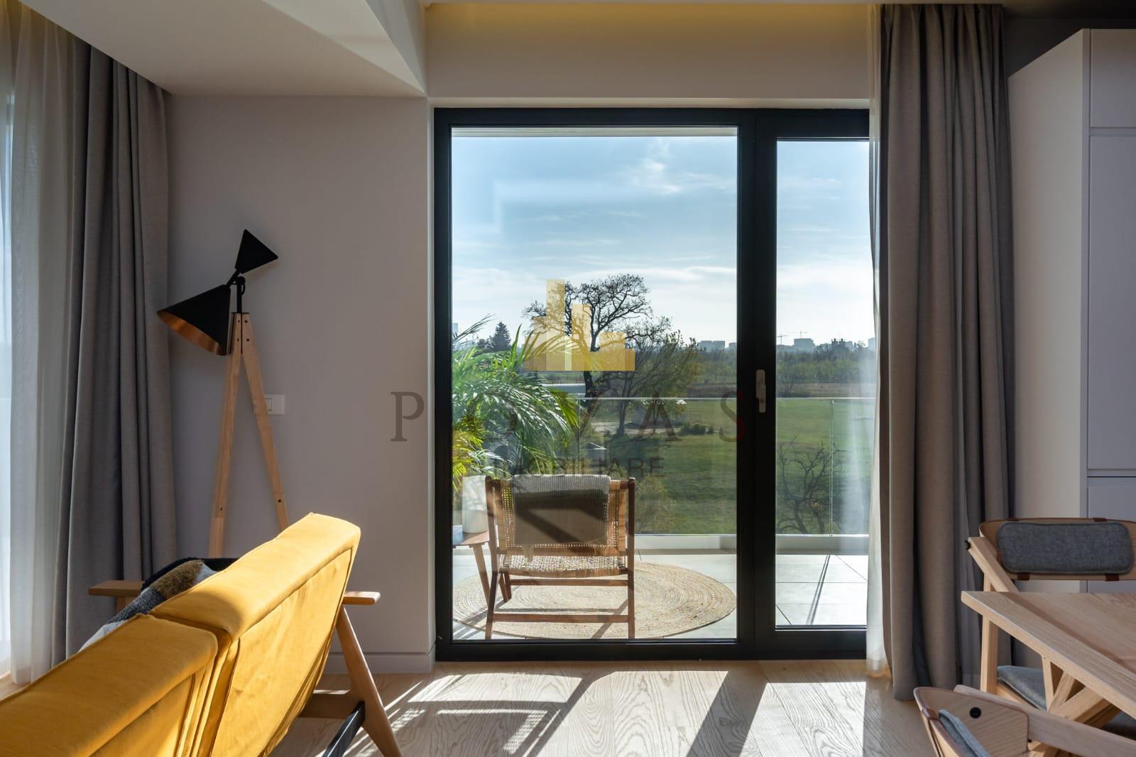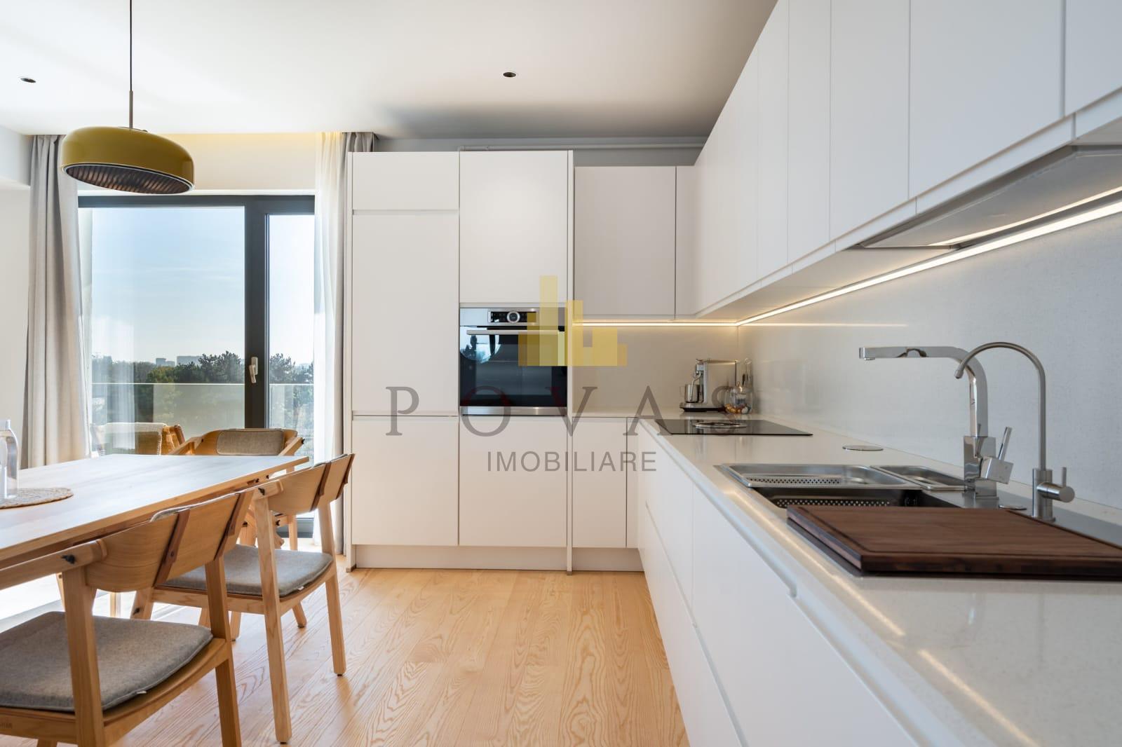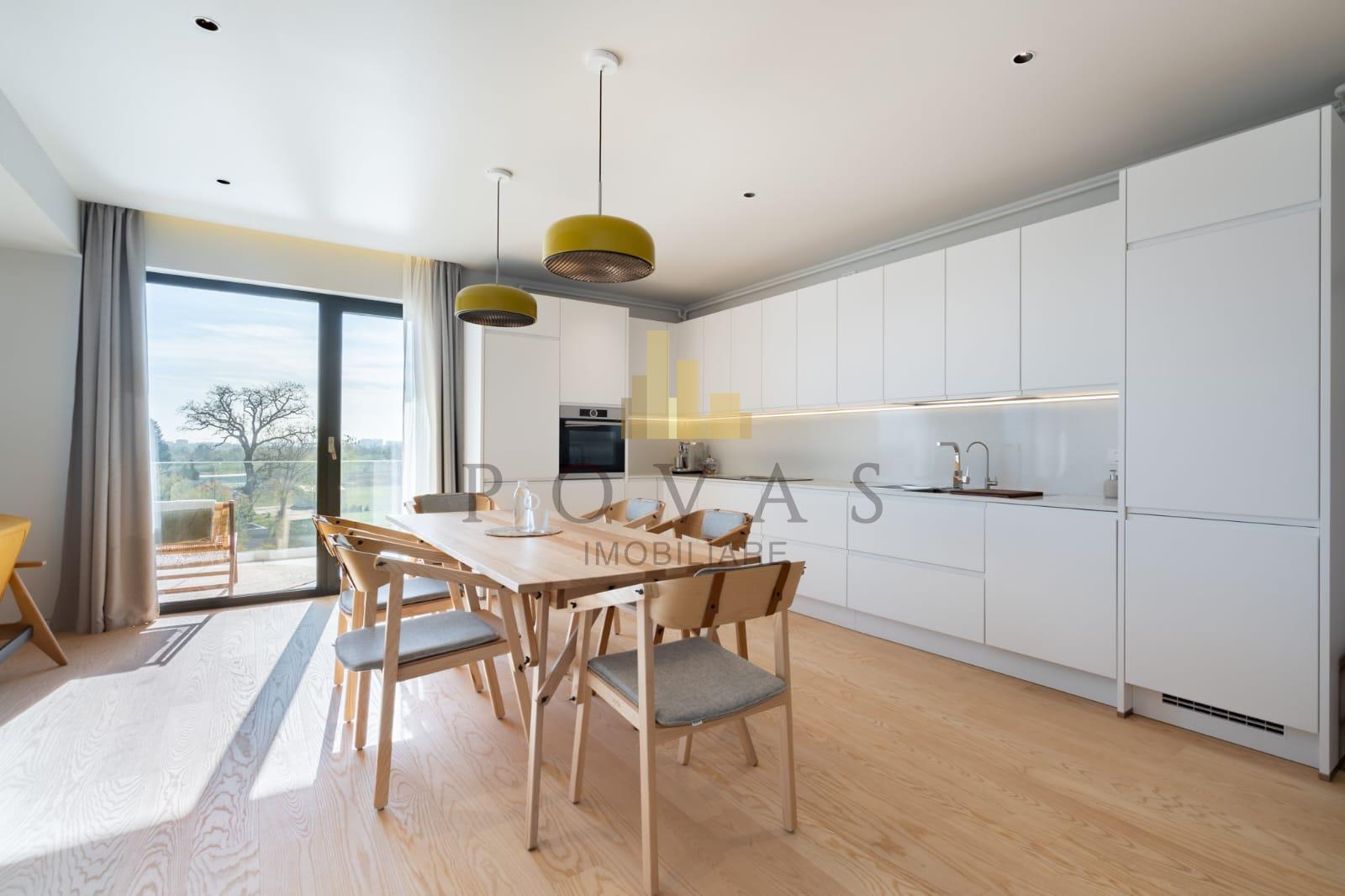 Apartamentul este spatios, luminos si beneficiaza de vedere directa catre lac, oferind un cadru relaxant si o atmosfera aparte. Zona de zi este generoasa si elegant amenajata, bucataria este complet mobilata si utilata, iar dormitorul asigura intimitate si confort la standarde inalte. Finisajele sunt premium, iar mobilierul este ales cu grija, punand accent pe design, functionalitate si armonie.