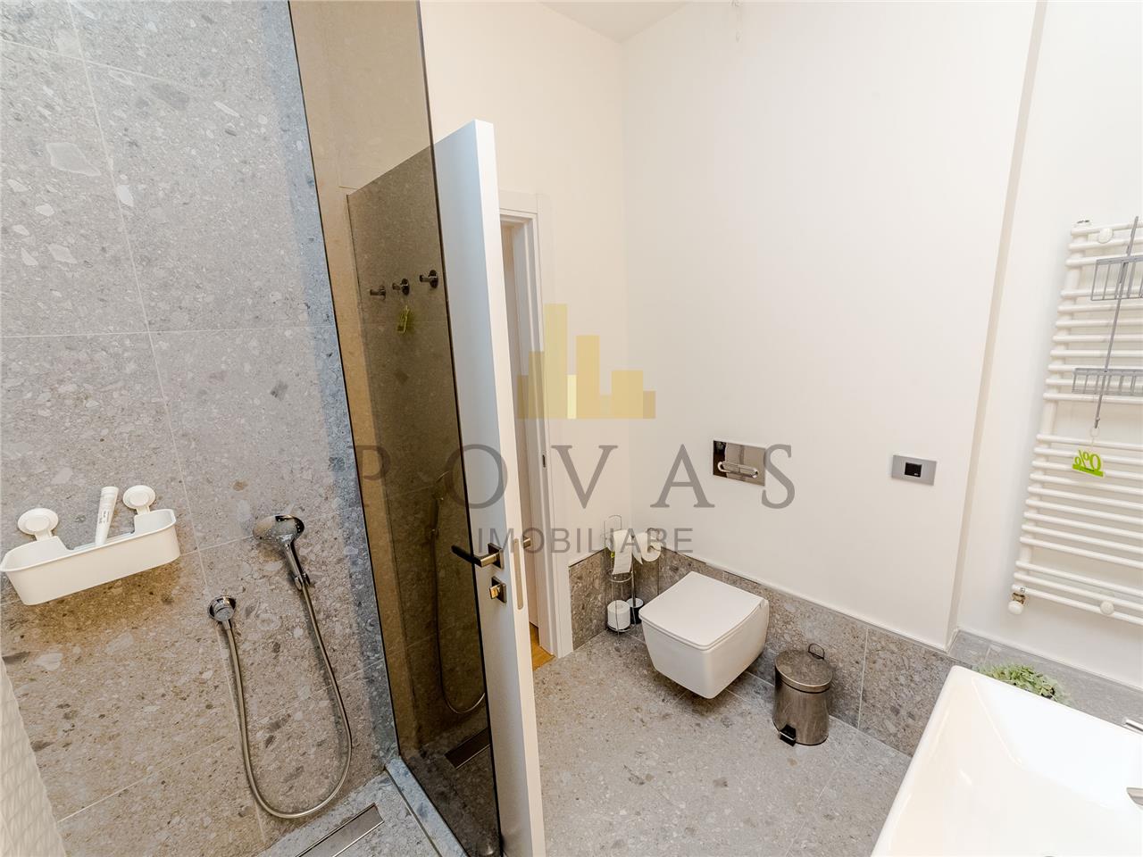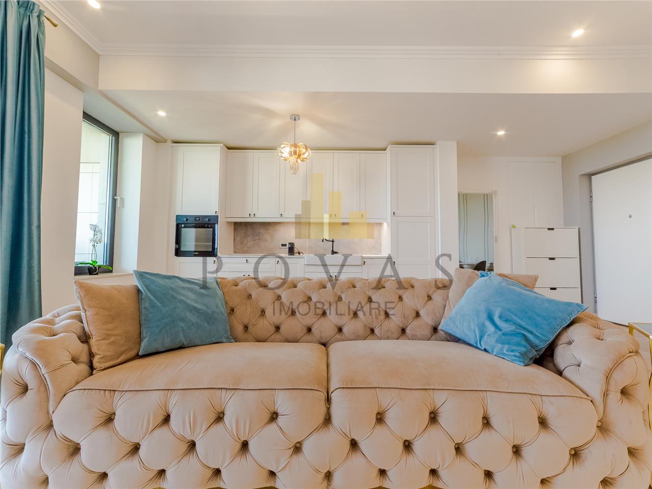 Apartamentul se preda complet mobilat si utilat, modern, avand un design aparte. Este extrem de cochet, foarte frumos amenajat. Are un living spatios, bucatarie deschisa, un dormitor si o baie.