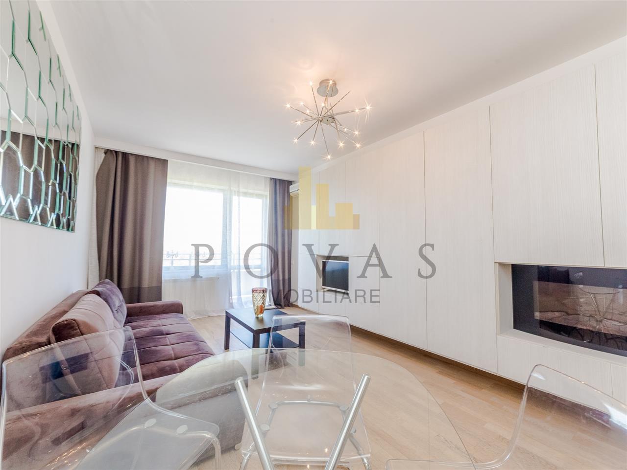 Apartamentul se preda complet mobilat si utilat, modern, avand un design aparte. Este extrem de cochet, foarte frumos amenajat. Are un living spatios, bucatarie deschisa, un dormitor si o baie.