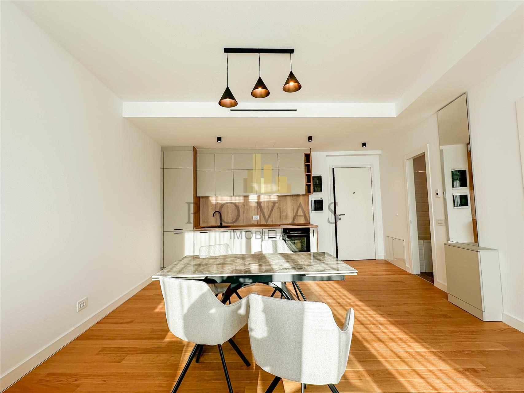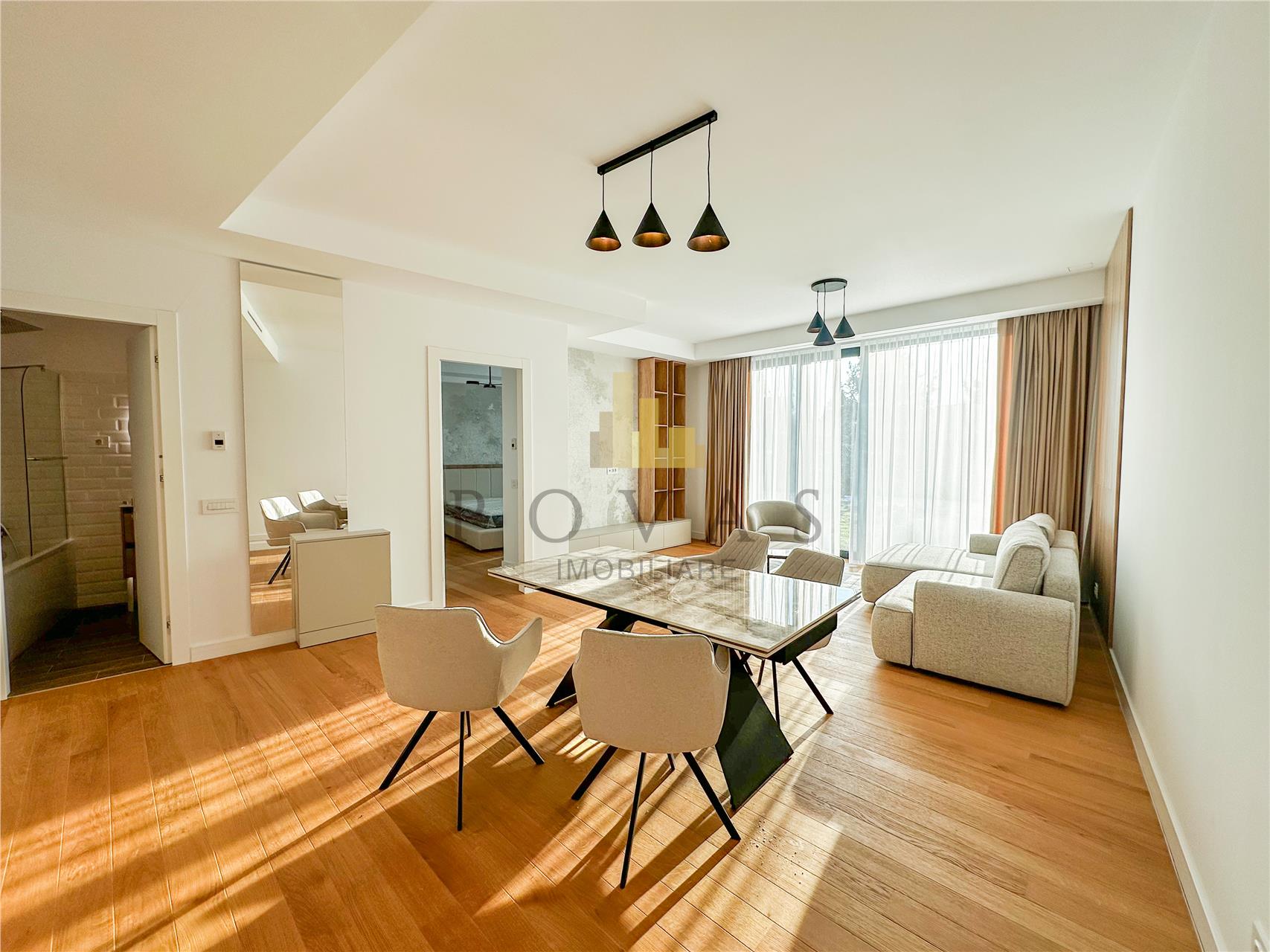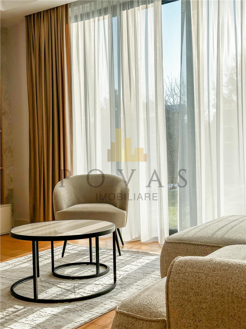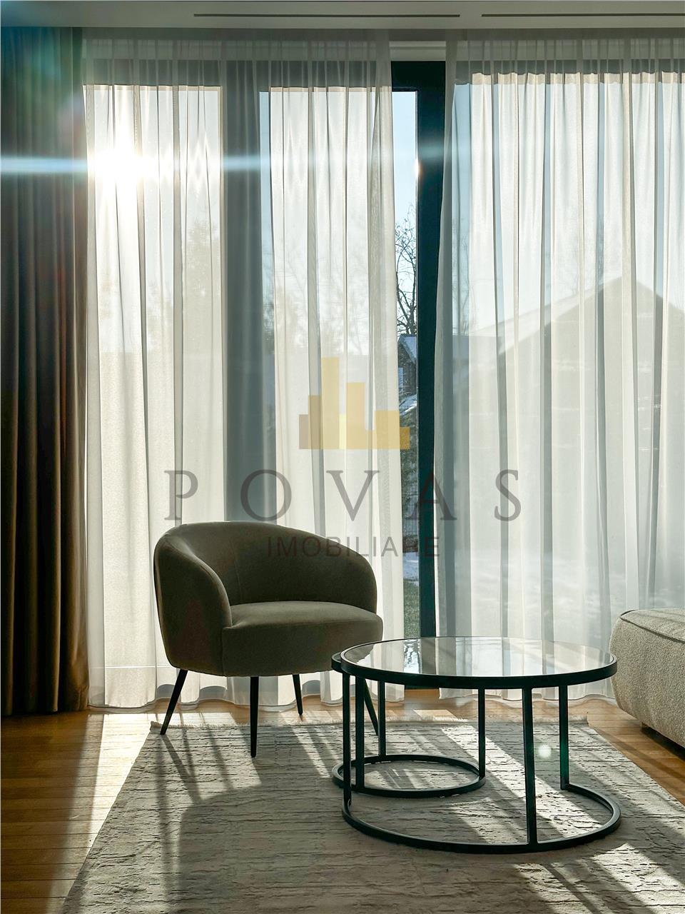 Locuinta se preda complet mobilata intr-un stil modern si luxos fiind dotata cu electrocasnice premium incluzand aragaz frigider masina de spalat rufe masina de spalat vase si hota. Confortul termic este asigurat de sistemul de incalzire prin pardoseala alimentat de centrala imobilului si de unitatea de aer conditionat.