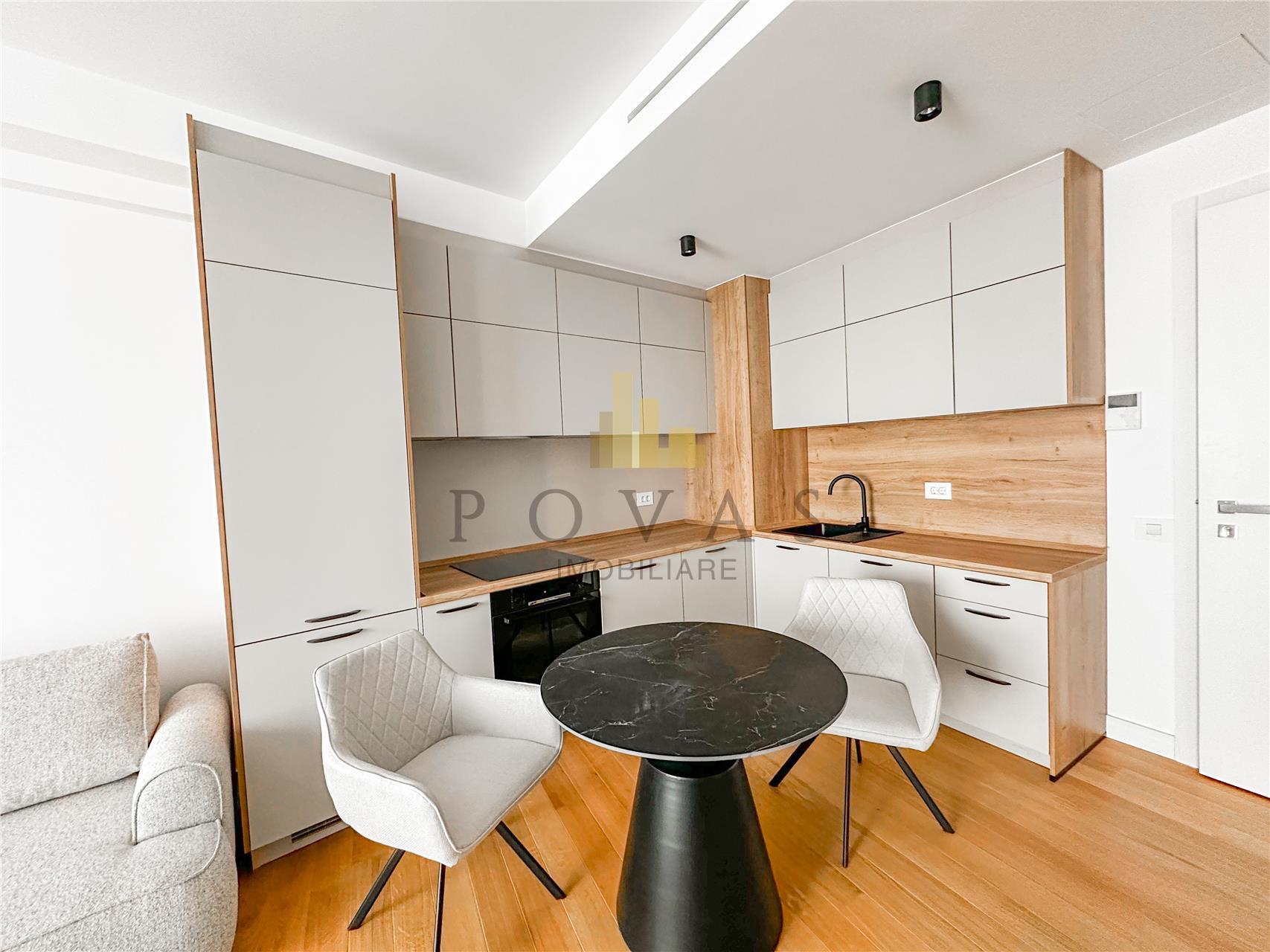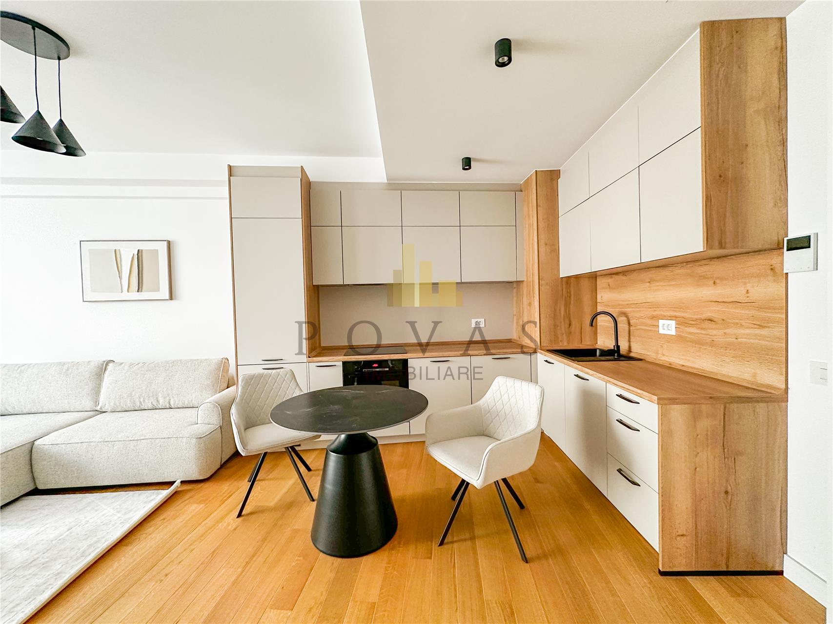 Locuinta se preda complet mobilata intr-un stil modern si luxos fiind dotata cu electrocasnice premium incluzand aragaz frigider masina de spalat rufe masina de spalat vase si hota. Confortul termic este asigurat de sistemul de incalzire prin pardoseala alimentat de centrala imobilului si de unitatea de aer conditionat.