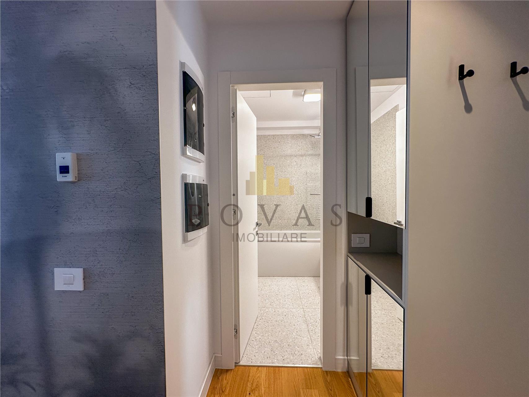 Locuinta se preda complet mobilata intr-un stil modern si luxos fiind dotata cu electrocasnice premium incluzand aragaz frigider masina de spalat rufe masina de spalat vase si hota. Confortul termic este asigurat de sistemul de incalzire prin pardoseala alimentat de centrala imobilului si de unitatea de aer conditionat.