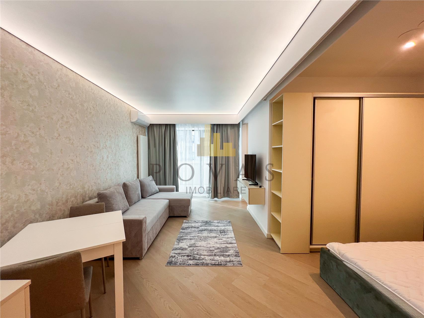 Inchiriere studio, semidecomandat, confort 1, situat in Cortina North, langa Pipera Plaza, Rond OMV, DRPCIV, Metrou Aurel Vlaicu, intr-un imobil construit în anul 2023, disponibil la etajul 3 din 10, cu o suprafata totala de 45 mp. Studioul se preda complet mobilat si utilat, modern, avand un design aparte. Are un living spatios, bucatarie deschisa si o baie. Are balcon deschis, iar privelistea este libera. Imobilul este situat in apropiere de supermarket, statie STB, benzinarie, sala de fitness, scoli si gradinite. Vino sa vizionezi studioul sa te convingi! ID intern: 2154
