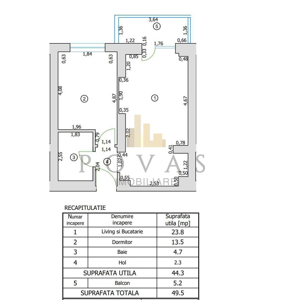 Apartamentul este situat la etajul 3 dintr-un imobil cu 10 niveluri si are o suprafata totala de 61 mp (50 mp utili). Compartimentarea este de tip semidecomandat, fiind optimizata pentru un stil de viata dinamic: