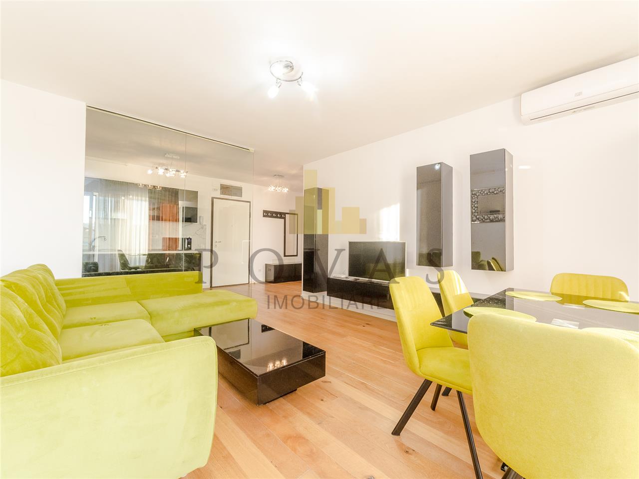 Apartamentul se preda complet mobilat si utilat, modern, avand un design aparte. Este extrem de cochet, foarte frumos amenajat. Are un living spatios, bucatarie deschisa, 2 dormitoare si 2 bai.