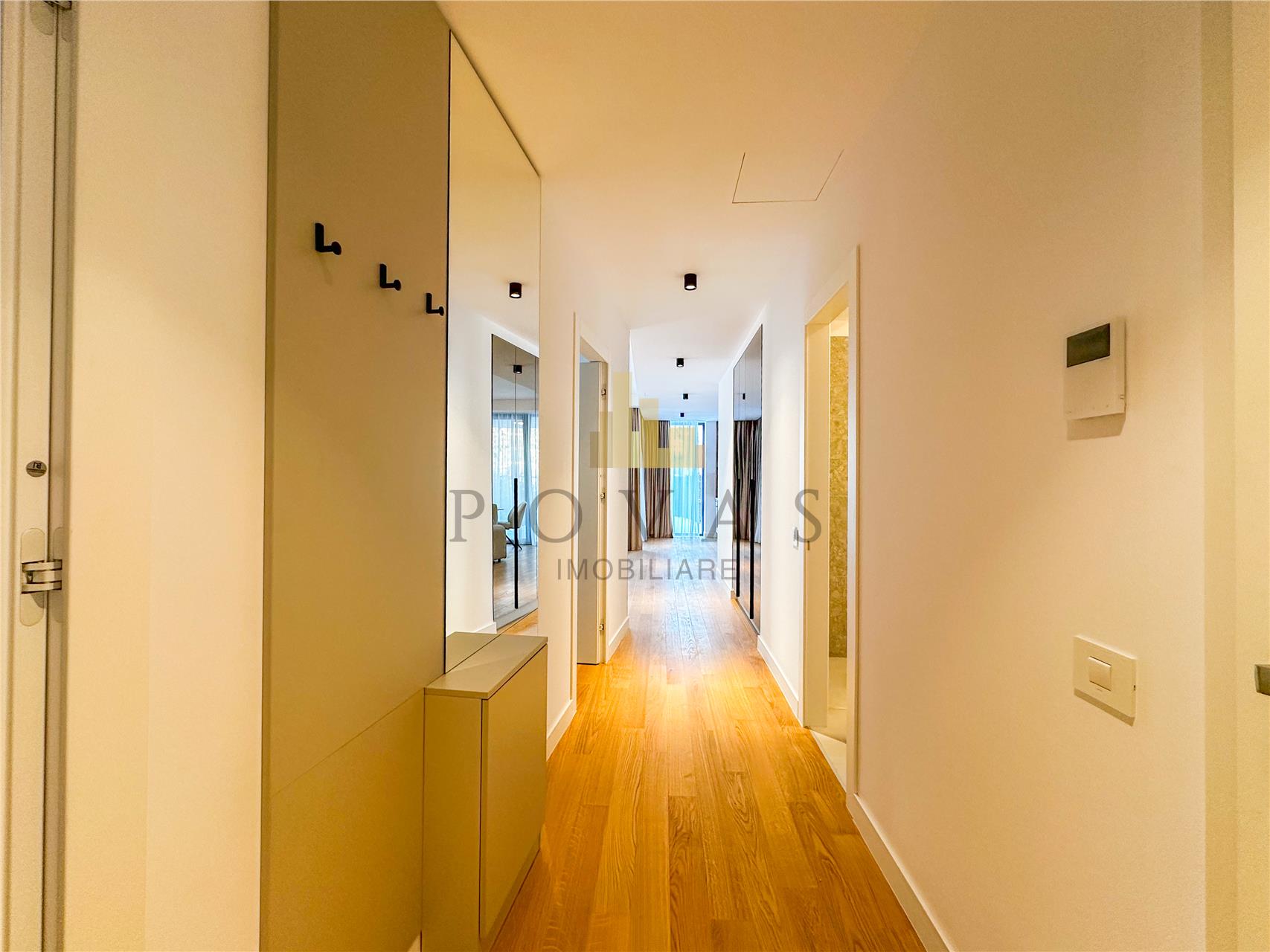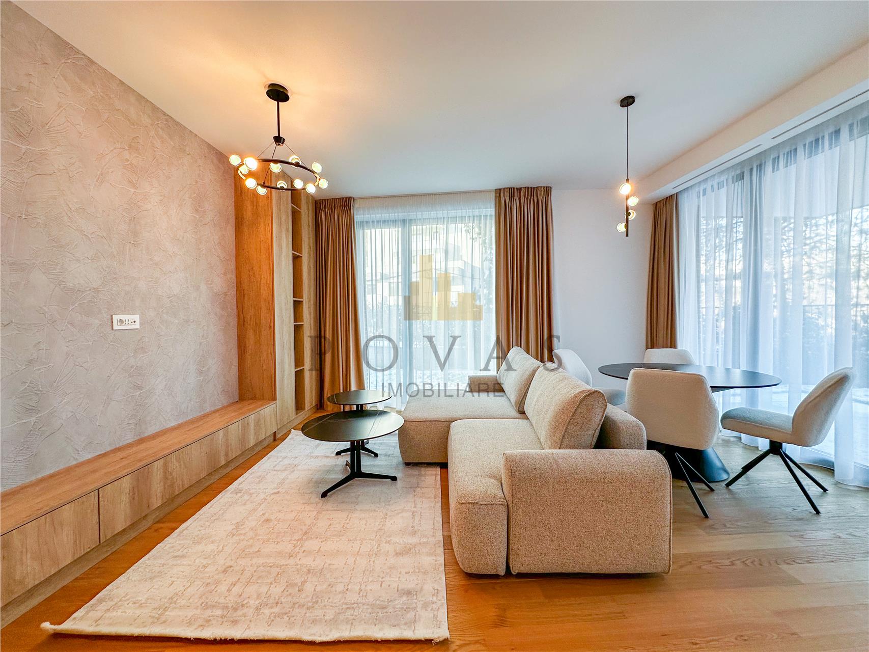 Locuinta se preda complet mobilata intr-un stil modern si luxos fiind dotata cu electrocasnice premium incluzand aragaz frigider masina de spalat rufe masina de spalat vase si hota. Confortul termic este asigurat de sistemul de incalzire prin pardoseala alimentat de centrala imobilului si de unitatea de aer conditionat.
