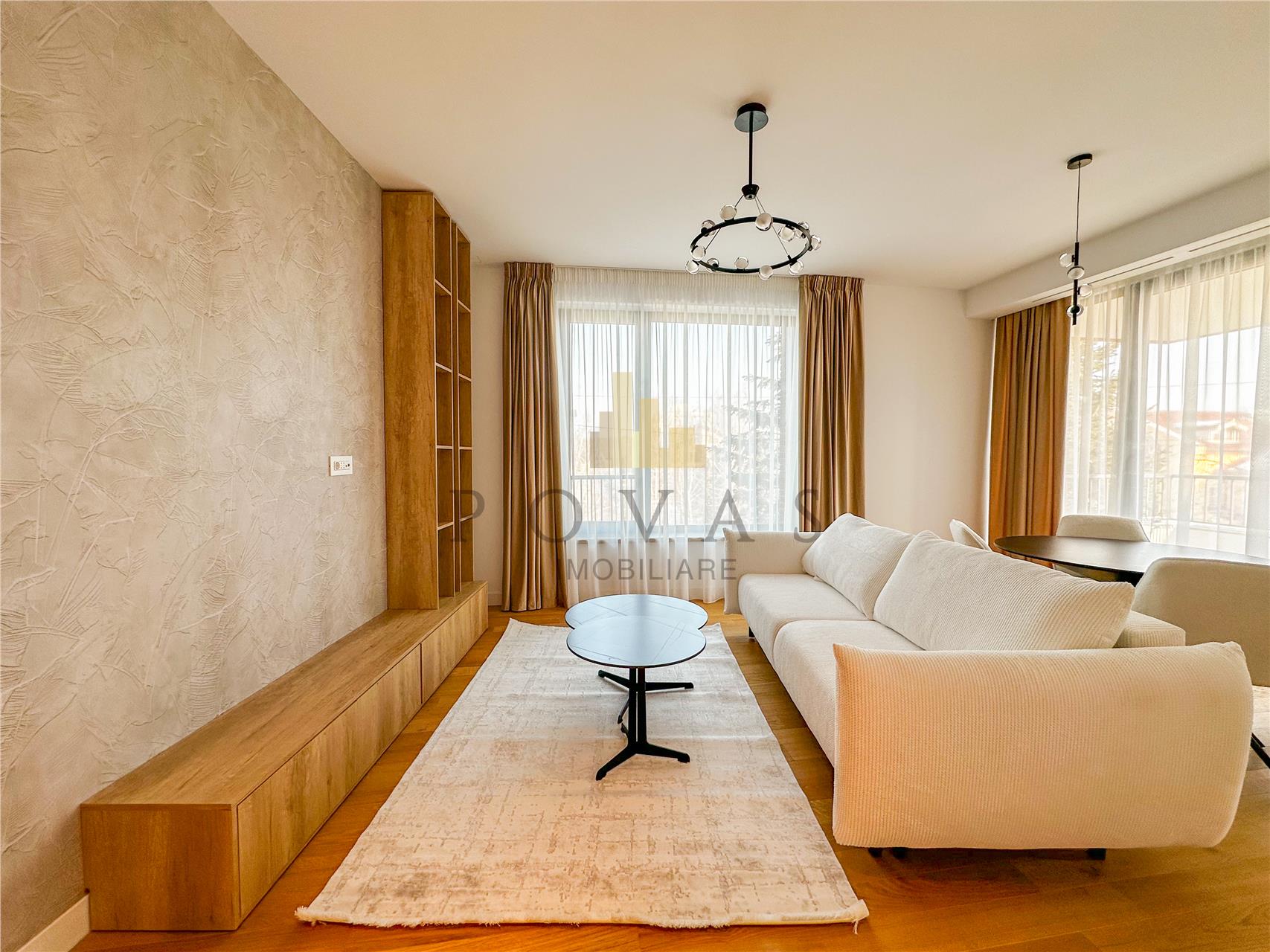 Locuinta se preda complet mobilata intr-un stil modern si luxos fiind dotata cu electrocasnice premium incluzand aragaz frigider masina de spalat rufe masina de spalat vase si hota. Confortul termic este asigurat de sistemul de incalzire prin pardoseala alimentat de centrala imobilului si de unitatea de aer conditionat.