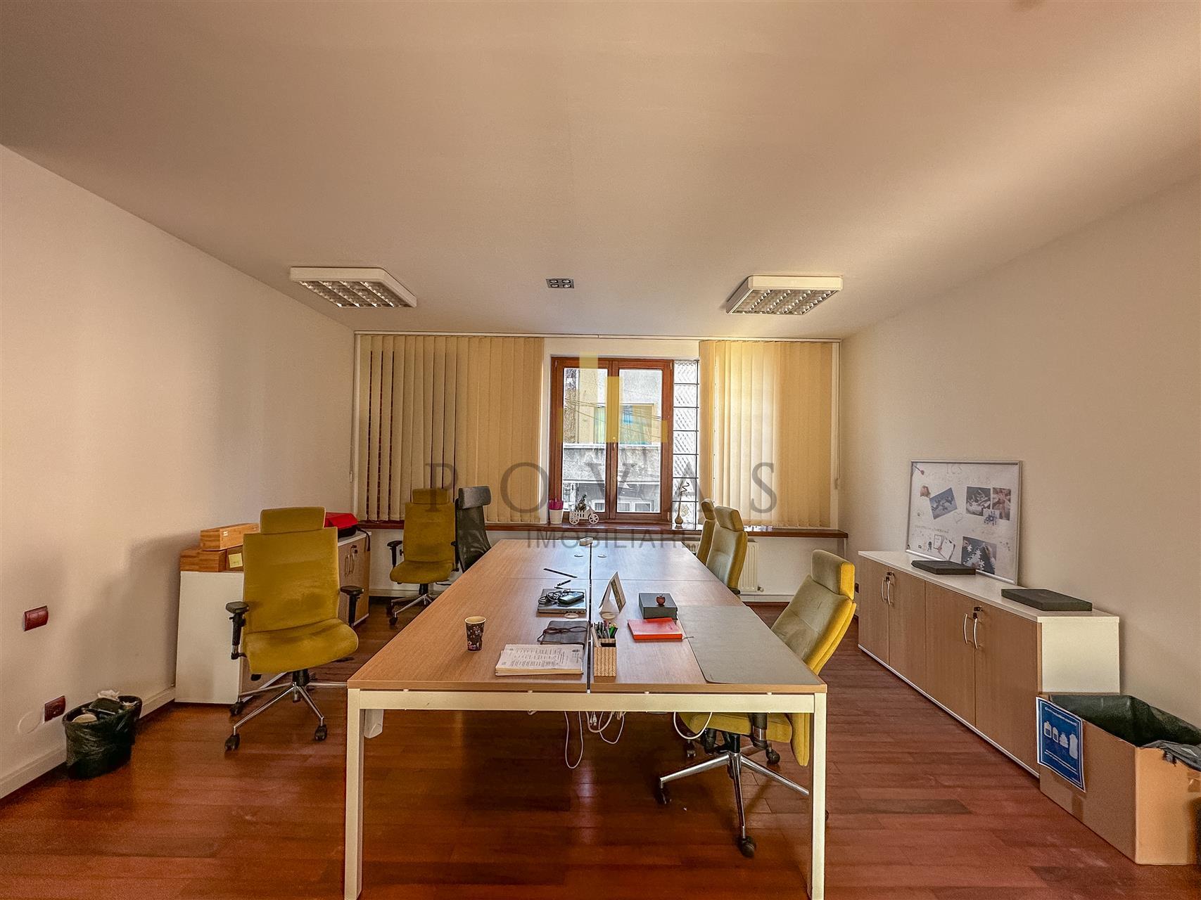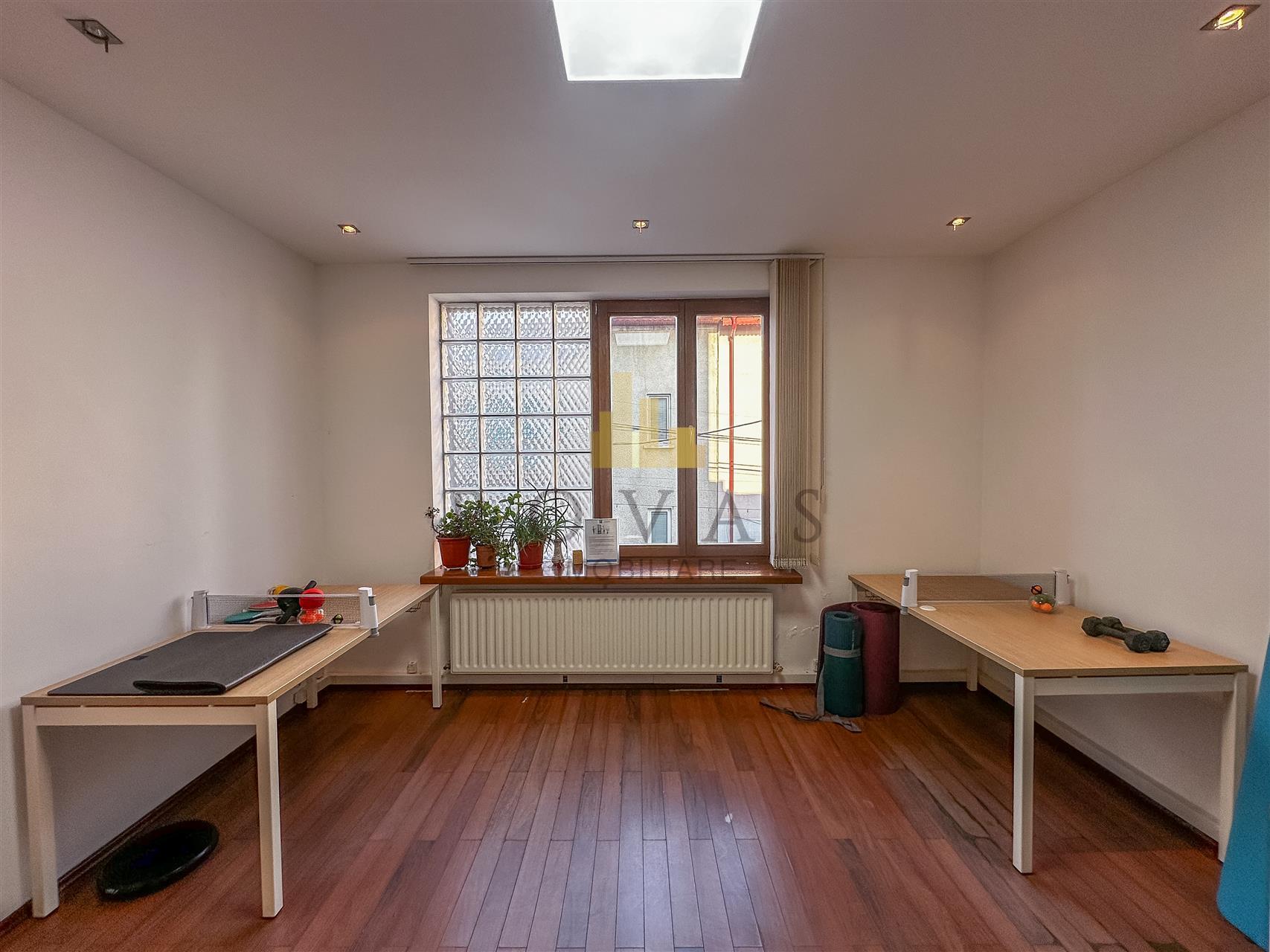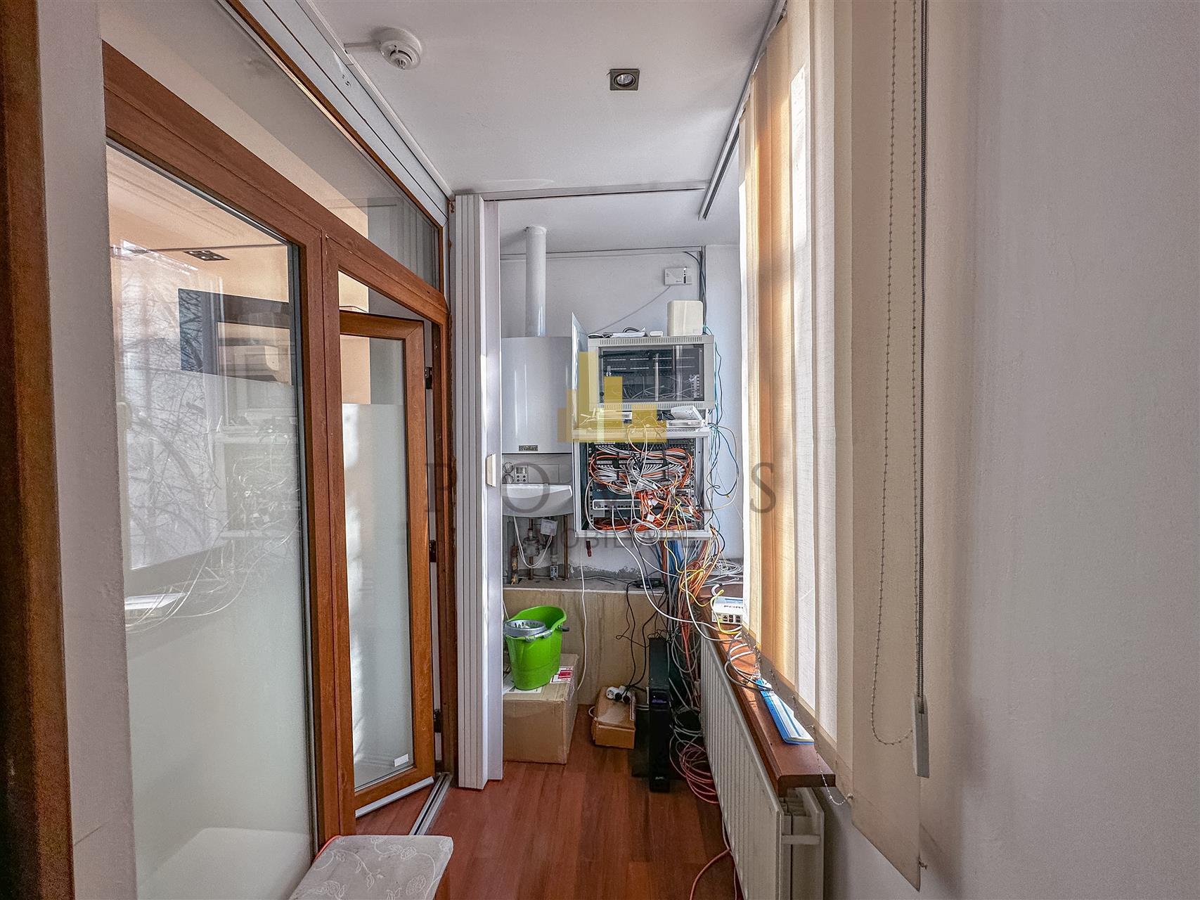 Spatiul are o suprafata utila de 113 mp dintr-o suprafata totala de 117 mp fiind compartimentat eficient in 3 incaperi spatioase. Interiorul se afla intr-o stare buna si beneficiaza de finisaje moderne precum pardoseli placate cu parchet si gresie pereti cu vopsea lavabila si tamplarie din PVC. Dotarile includ centrala termica proprie calorifere usa de intrare din metal si usi interioare din lemn si sticla.