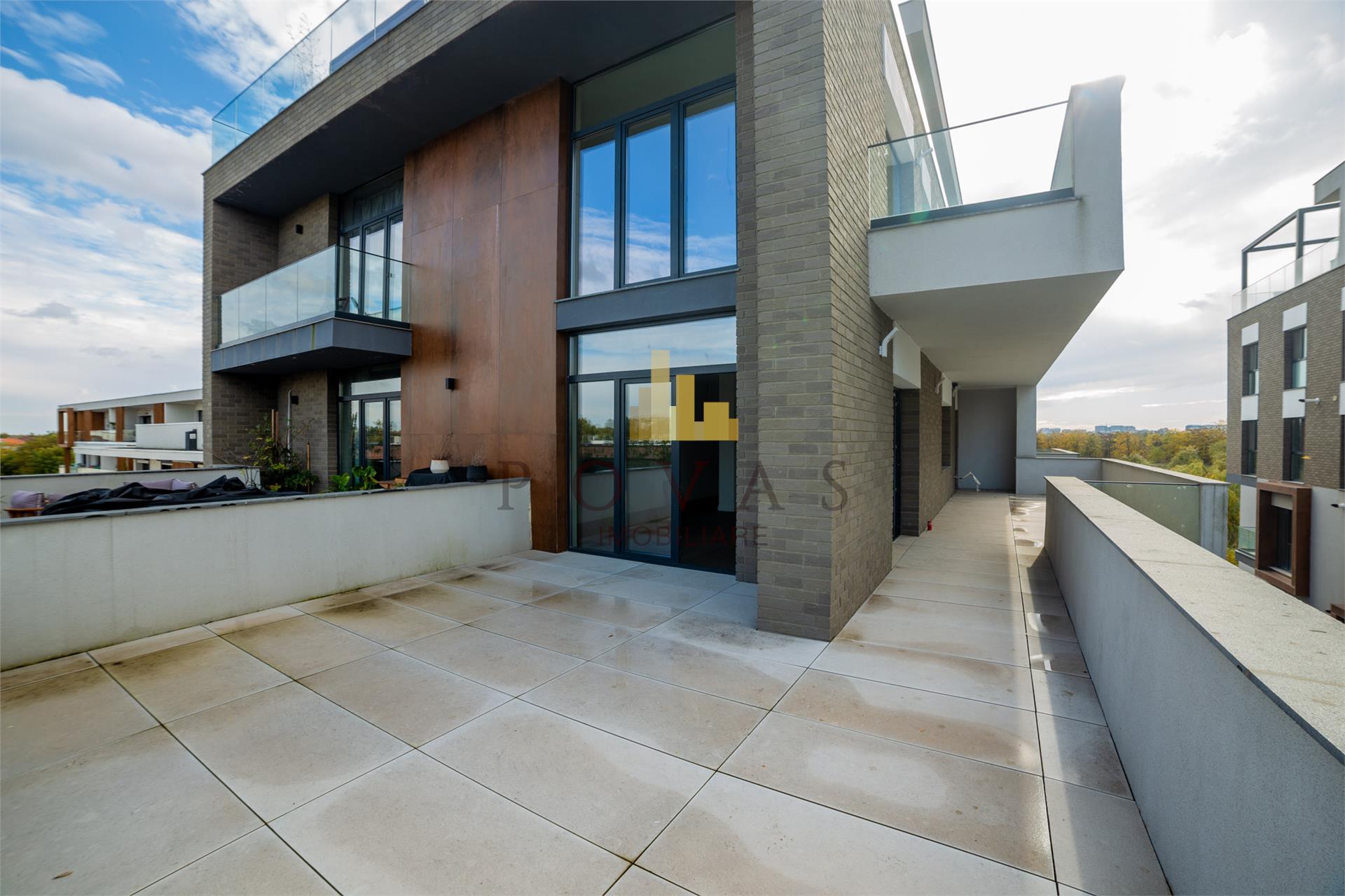 Apartamentul are o **suprafata utila de 122 mp** (156 mp total) si se desfasoara pe **trei niveluri**, oferind o compartimentare moderna, spatii generoase si o atmosfera luminoasa si aerisita. Cele **trei terase mari** cu **vedere libera** completeaza perfect sentimentul de confort si deschidere.