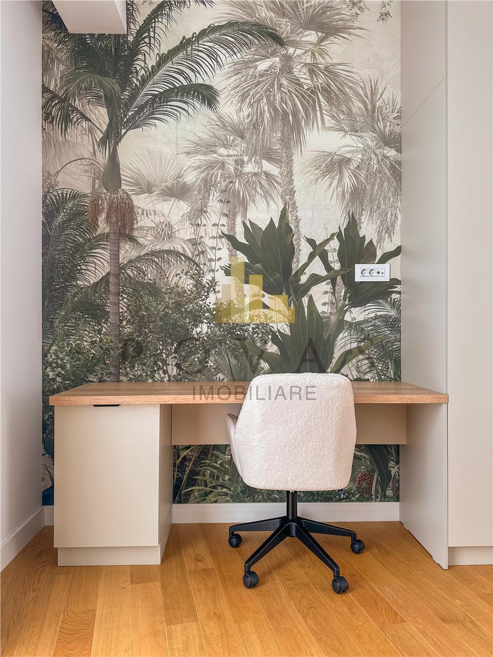 Locuinta se preda complet mobilata intr-un stil modern si luxos fiind dotata cu electrocasnice premium incluzand aragaz frigider masina de spalat rufe masina de spalat vase si hota. Confortul termic este asigurat de sistemul de incalzire prin pardoseala alimentat de centrala imobilului si de unitatea de aer conditionat.