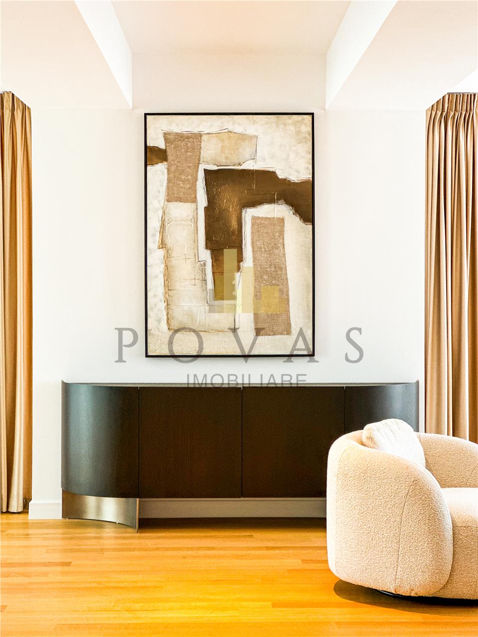Locuinta este complet mobilata intr-un stil modern si beneficiaza de dotari de lux precum incalzire in pardoseala centrala imobilului aer conditionat si ferestre cu tamplarie de inalta calitate. Imobilul este prevazut cu lift administratie paza si supraveghere video. Pentru siguranta masinii dumneavoastra exista un loc de parcare situat in garajul subteran disponibil pentru un cost de 110 euro plus TVA pe luna. Localizarea este privilegiata oferind acces rapid catre Gradina Zoo Mall Baneasa si cele mai bune scoli internationale din zona.