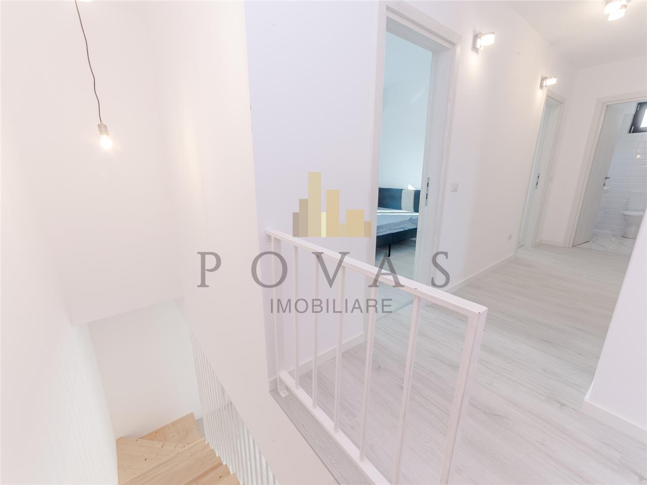 Vila duplex de vanzare in zona - Balotesti, reper Laguna Verde, avand 4 camere, 3 dormitoare, suprafata totala construita 118,9 mp, suprafata utila 90,6 mp si suprafata teren 247 mp. Imobilul are amprenta 61 mp, curtea individuala libera 40 mp. Are structura din caramida , este construita in anul 2021, renovat , constructie din caramida porotherm, caramida , avand 3 bai, bucatarii si balcoane. Dotari : acoperis: lindab; bucatarie: da, mobilata, utilata, deschisa; calorifere: da; ferestre casa: term. pvc; incalzire casa: centrala termica; izolatii termice: exterior; mobilat: complet, modern; pereti: faianta, lavabil; plansee: beton; podele: parchet, gresie; structura casa: caramida; tip curte: individuala. Pretabil locuinta. ID intern: 2821