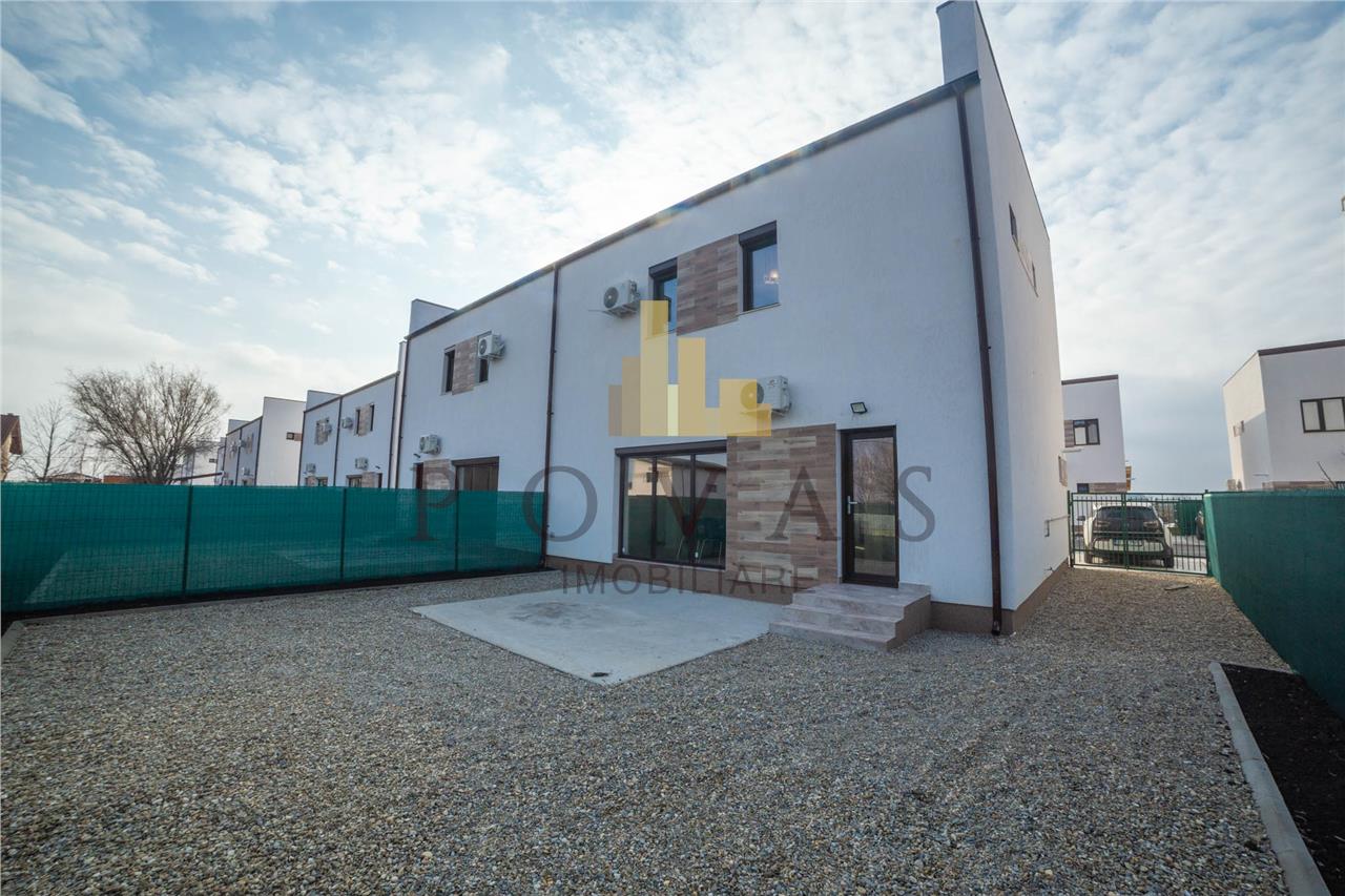 Vila duplex de vanzare in zona - Balotesti, reper Laguna Verde, avand 4 camere, 3 dormitoare, suprafata totala construita 118,9 mp, suprafata utila 90,6 mp si suprafata teren 247 mp. Imobilul are amprenta 61 mp, curtea individuala libera 40 mp. Are structura din caramida , este construita in anul 2021, renovat , constructie din caramida porotherm, caramida , avand 3 bai, bucatarii si balcoane. Dotari : acoperis: lindab; bucatarie: da, mobilata, utilata, deschisa; calorifere: da; ferestre casa: term. pvc; incalzire casa: centrala termica; izolatii termice: exterior; mobilat: complet, modern; pereti: faianta, lavabil; plansee: beton; podele: parchet, gresie; structura casa: caramida; tip curte: individuala. Pretabil locuinta. ID intern: 2821