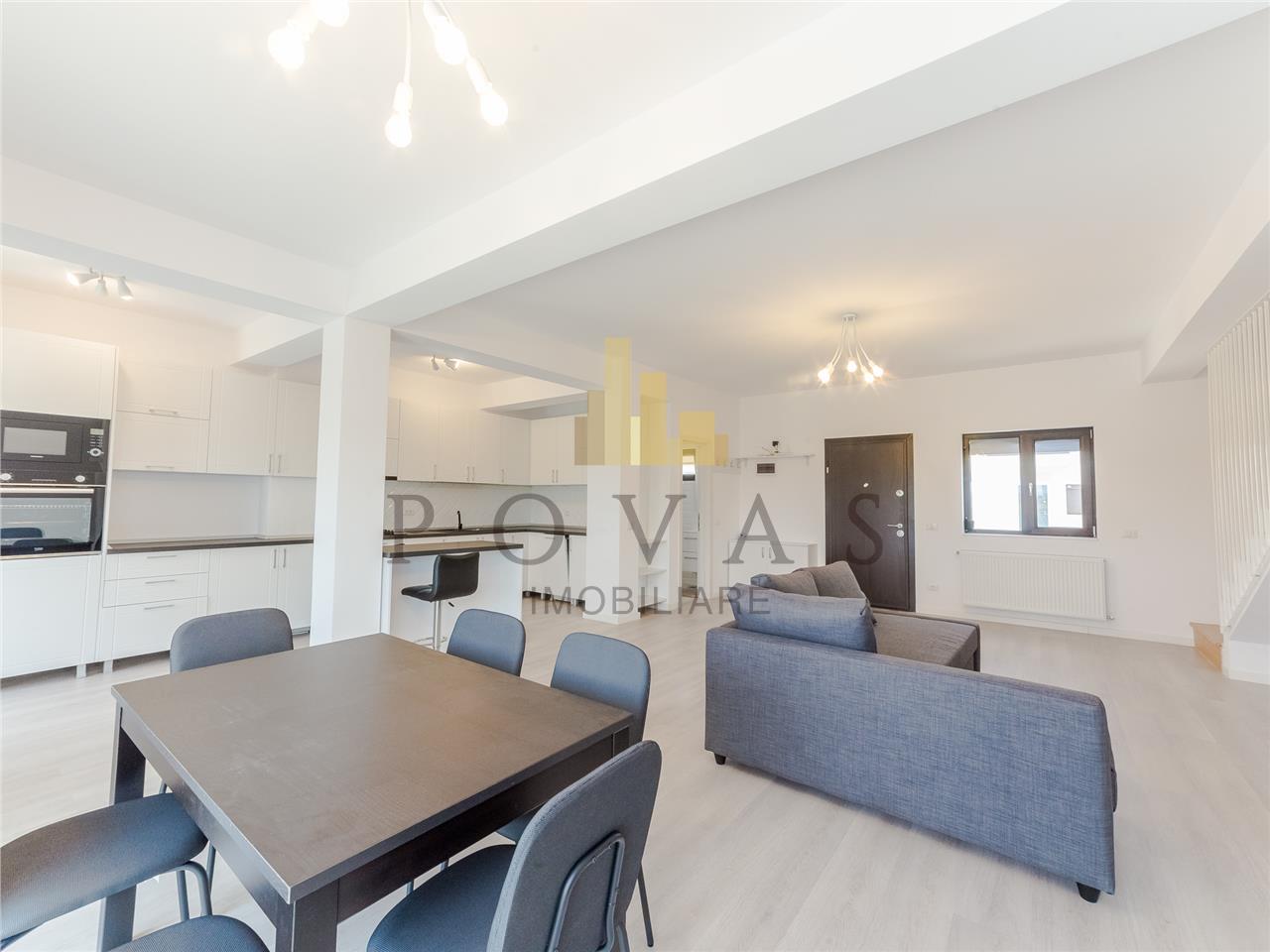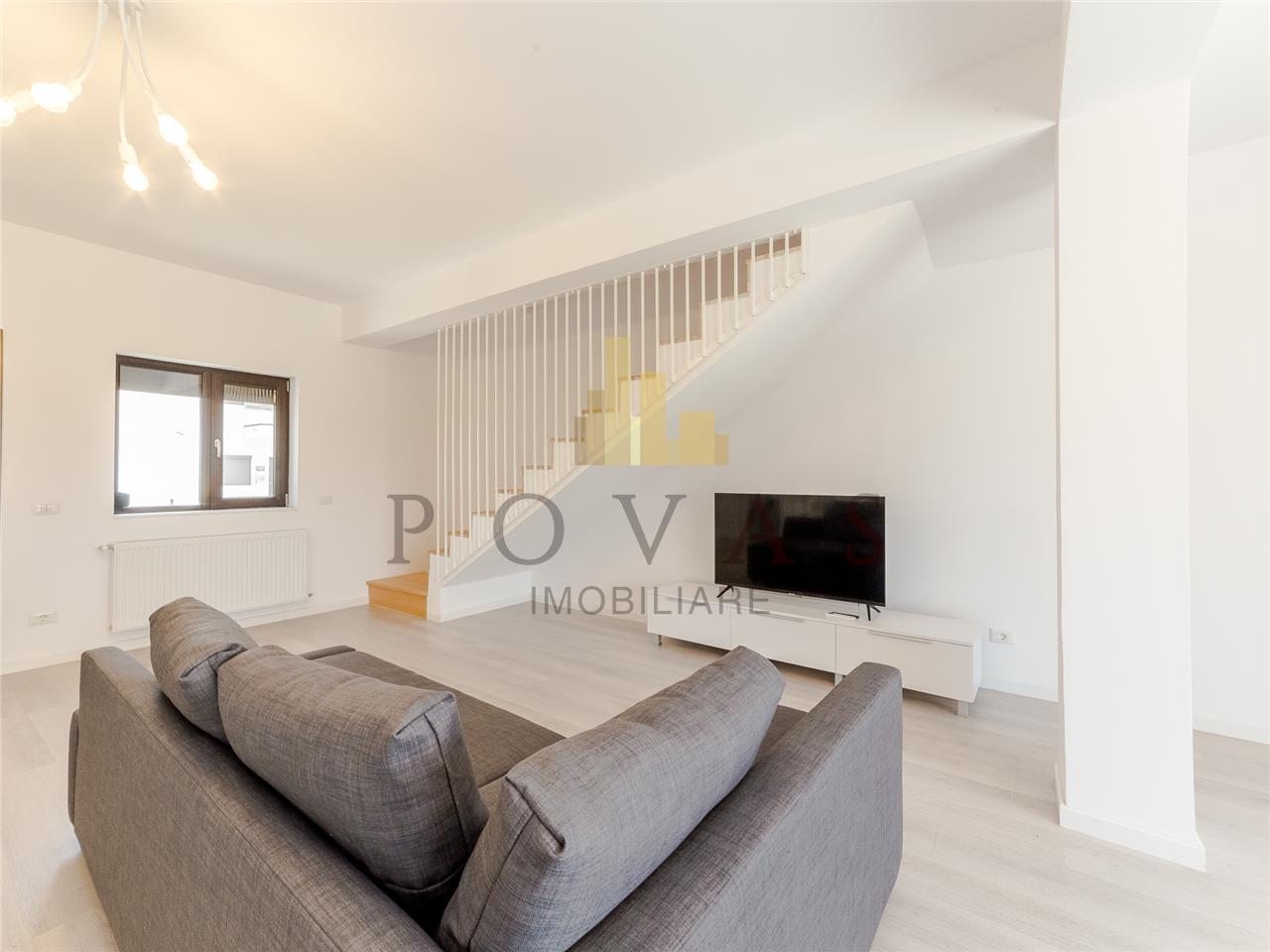 Vila duplex de inchiriere in zona - Balotesti, reper Laguna Verde, avand 4 camere, 3 dormitoare, suprafata totala construita 118,9 mp, suprafata utila 90,6 mp si suprafata teren 100 mp. Imobilul are amprenta 61 mp, curtea individuala libera 40 mp. Are structura din caramida , este construita in anul 2024, renovat , constructie din caramida porotherm, caramida , avand 3 bai, bucatarii si balcoane. Dotari : acoperis: lindab; bucatarie: da, mobilata, utilata, deschisa; calorifere: da; ferestre casa: term. pvc; incalzire casa: centrala termica; izolatii termice: exterior; mobilat: complet, modern; pereti: faianta, lavabil; plansee: beton; podele: parchet, gresie; structura casa: caramida; tip curte: individuala. Pretabil locuinta. ID intern: 1906.