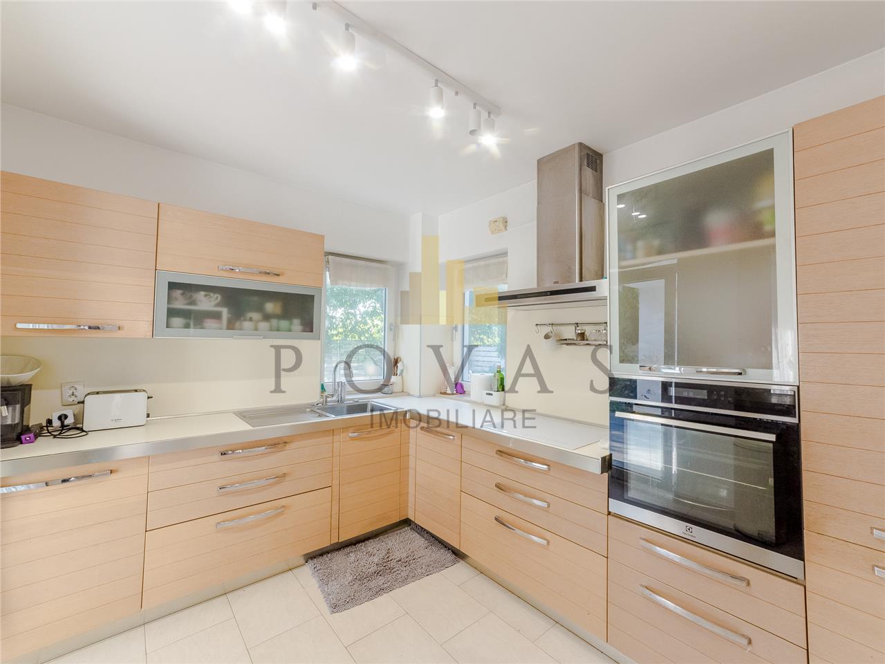 Construită solid din cărămidă porotherm și renovată cu atenție, vila dispune de 3 băi, 2 balcoane, o bucătărie mobilată și utilată, precum și finisaje moderne: parchet, gresie, pereți lavabili și ferestre termopan PVC.